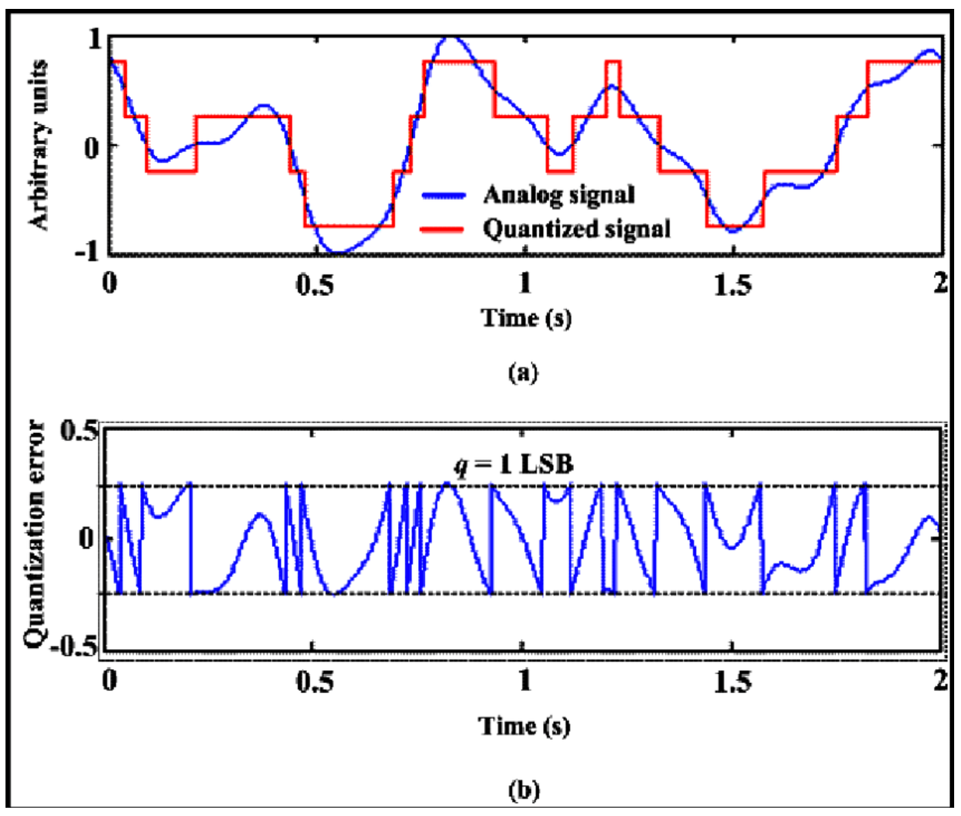 Each sampled amplitude is rounded to the nearest quantization level. This process introduces some error, known as quantization noise or quantization error, which is inversely related to the bit depth.