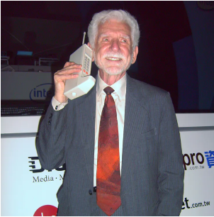 Figure 2 – M. Cooper with Motorola DYNATAC Prototype, 1973 (pic. Rico Shen)